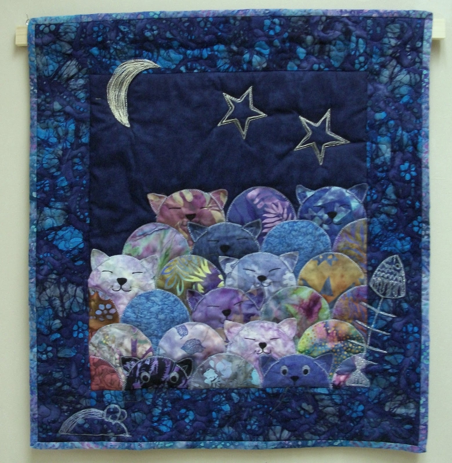 Eigenlijk wil ik de kerstquilt eens afmaken. Hij hangt al drie jaar over de ring om gequilt te worden, maar om duistere redenen wil ik er maar niet toe komen. Ik heb ook even geprobeerd om machinaal te quilten, maar het voelt na zo lange tijd echt heel vreemd. Het werd dus een gepruts en ik heb het weer uitgehaald. Daarom dus eerst maar wat kleine dingetjes doen.
